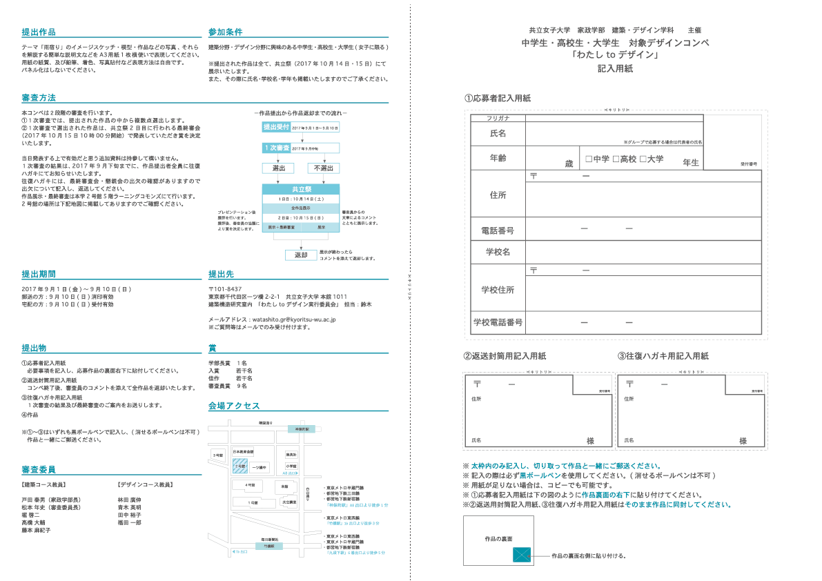 共立女子大学では、これを機に家政学部建築・デザイン学科に興味をもってくれる生徒の増加についても期待を込めている。「わたし to デザイン」の概要は下記の通り。