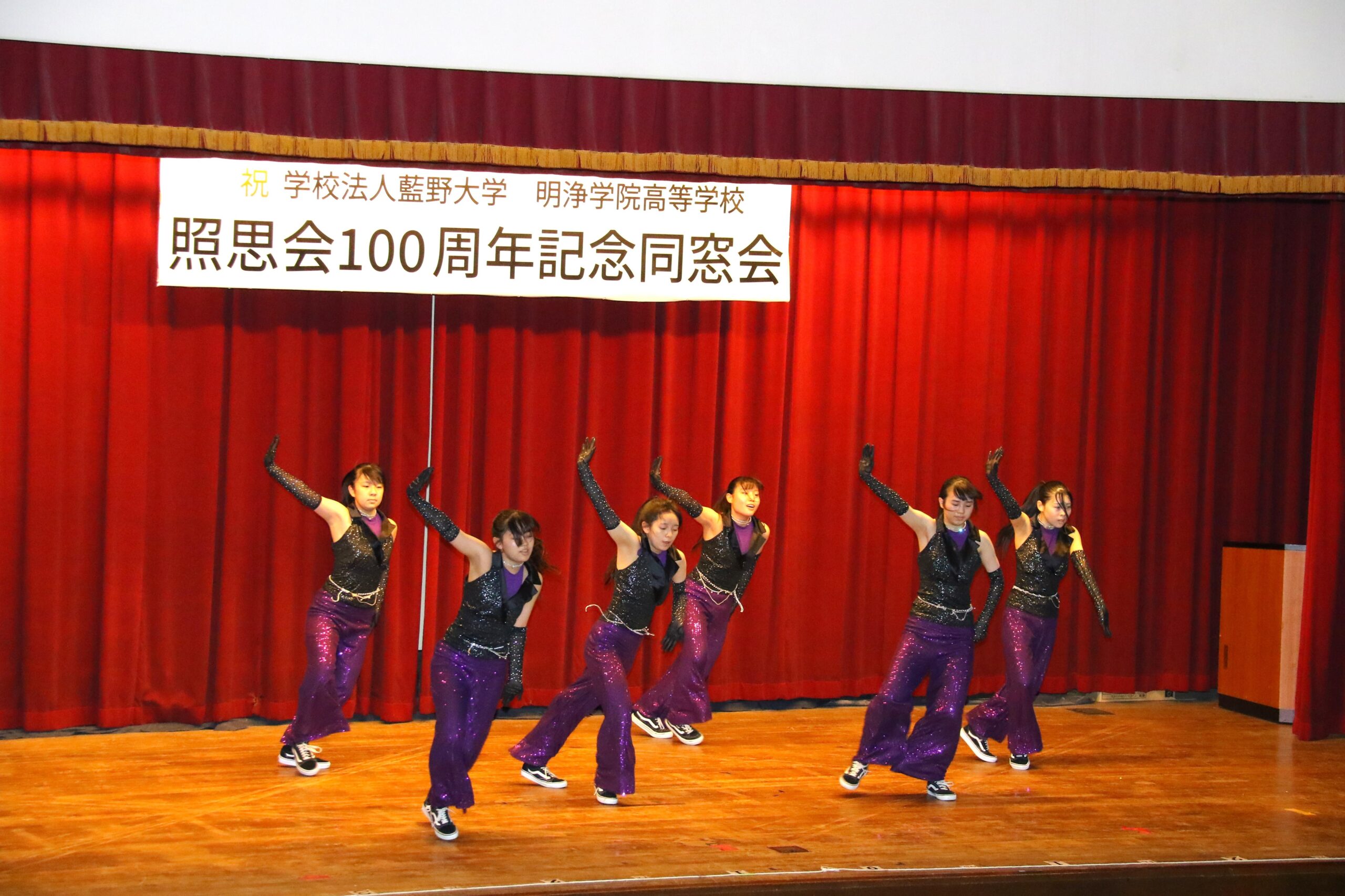 同窓会当日は、学校100周年動画の放映、本校の卒業生(59期生)で、ファッションモデル・タレントとして活躍中の前田典子さんをゲストにお招きした卒業生対談の他、本校ダンス部によるパフォーマンスおよび吹奏楽部による演奏などを行った。