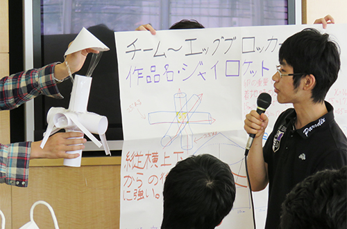 コンテストでは、工学部基礎理工学科の新入生が3、4人ずつの14チームに分かれて緩衝器を製作。卵を割らずに、目標にもっとも近い位置に落下させたチームに最優秀作品賞を授与する。また、卵が割れても、卓越したアイデアの作品にはアイデア賞を授与。そのほか、目標にぴったり着地した作品にはホールインワン賞、見事なプレゼンテーションを行ったチームにはプレゼン賞が贈られる。