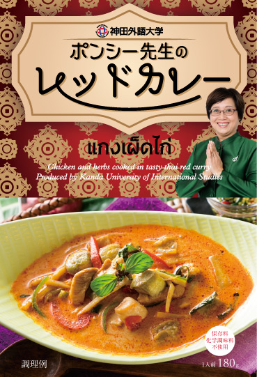 このたび、同大創立30周年事業の一環として、ポンシー・ライト特任准教授と周年事業実行委員会が意見交換を重ね、オリジナルカレーの企画構想を実現。オリジナルレシピを使った本場のタイカレーを家庭でも楽しんでもらえるよう、レトルトカレーとしての商品化に至った。