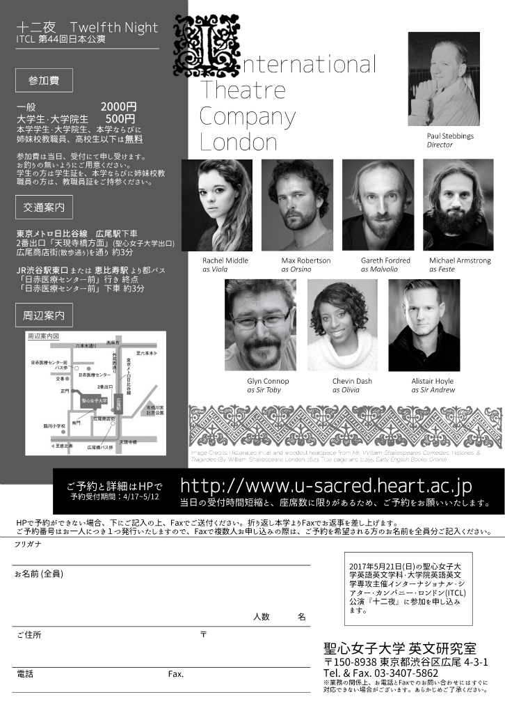 ■聖心女子大学公開講座 シェイクスピア劇『十二夜』公演 概要