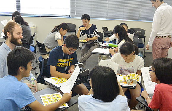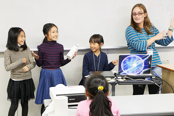 昨年春から開講した年3回実施の小学生向けプログラム。参加者は1日小さな「大学生」となり、TUJの現役大学生と一緒に英語でコミュニケーションをとりながら学習する。プログラムの前半はアクティビティを通し、テーマに沿った単語や表現を学び、後半には少しアカデミックで楽しいプロジェクトに取り組む。参加者2~3人とTUJの学生1人でグループを構成し学習するので、1日体験でも英語に触れる時間の多いプログラム。グループの編成は参加者のレベルによって行われるので、まだ英語にあまり馴染みのない初心者から、帰国生など英語が既に堪能な人まで幅広く参加できる。