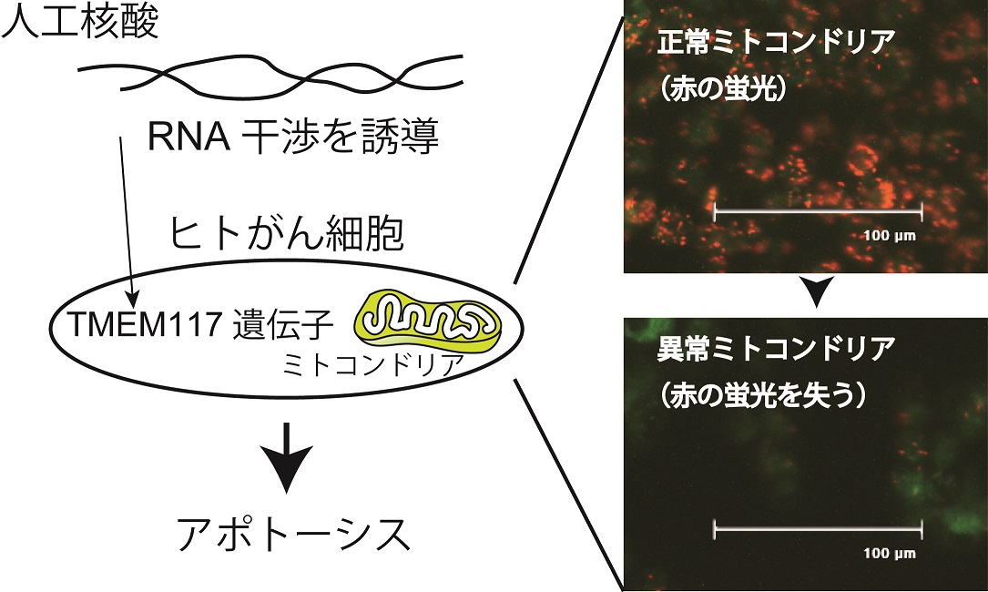 研究グループが新たに発見したTMEM117を標的としたRNA干渉は、小胞体ストレスによるミトコンドリア膜電位の消失を伴うがん細胞のアポトーシスを誘導するものである。今後、TMEM117の機能解明が進むことで、がん細胞死を誘導する核酸医薬品の開発が期待される。