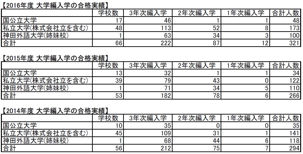 神田外語学院から全国の国公私立大学に2016年度は321名が編入学・進学 — 国公立大学編入学合格実績数は過去最高を記録