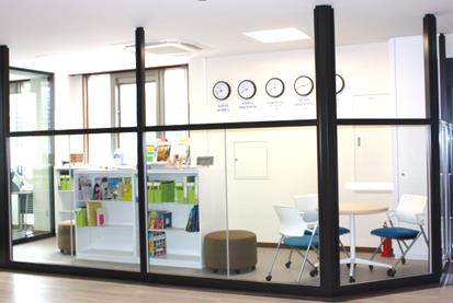 CLA棟は地上4階建て。第1期工事(2016年7月~9月)では3・4階の教室フロアを改修しました。教室フロアは、大教室(100名程度収容)3教室、中教室(60名程度収容)2教室、小教室(40名以下)9教室の全14教室で構成。小教室のうち4教室は演習室となっており、アクティブラーニング型の授業やグループワーク形式の授業で活用される。各教室の廊下側との仕切りはガラスのパーティションを使用し、明るく活動的な印象の校舎となっている。