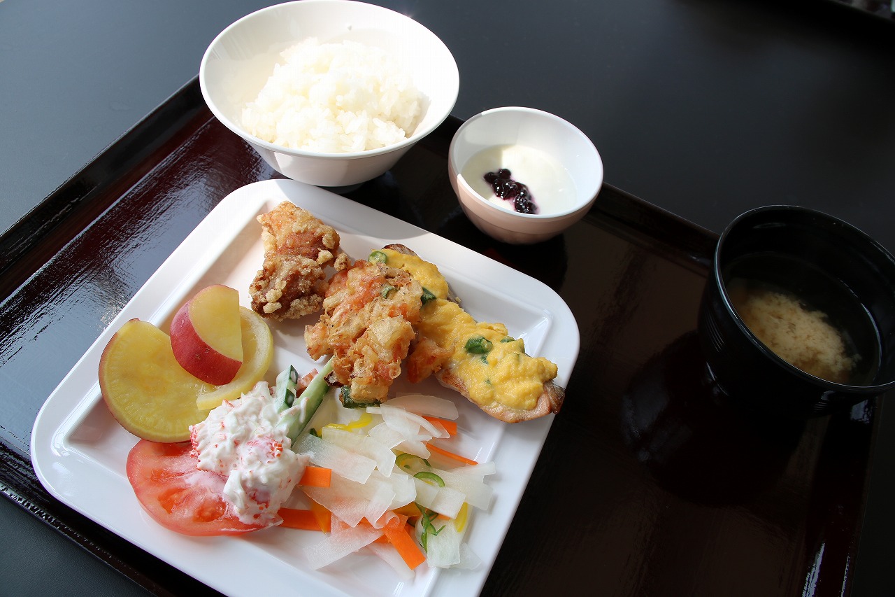 朝食:鮭定食 300円、唐揚げ定食 300円 など