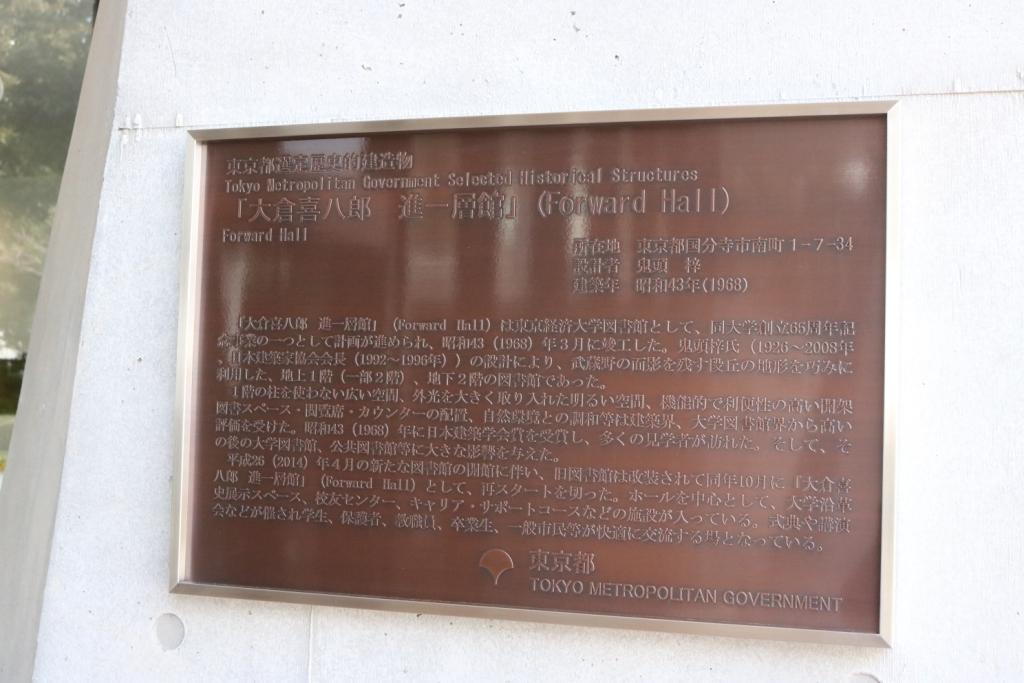 「大倉喜八郎 進一層館(Forward Hall)」は、1968年から2014年までの長年にわたって「図書館」として学生や教職員、卒業生それに地域住民などに親しまれていた。天井までの高さが4メートルもありながら、柱が1本もない斬新な空間を演出している点などが評価され、大学図書館として初めて日本建築学会賞を受賞し、のちの大学図書館業界に影響を与えた。