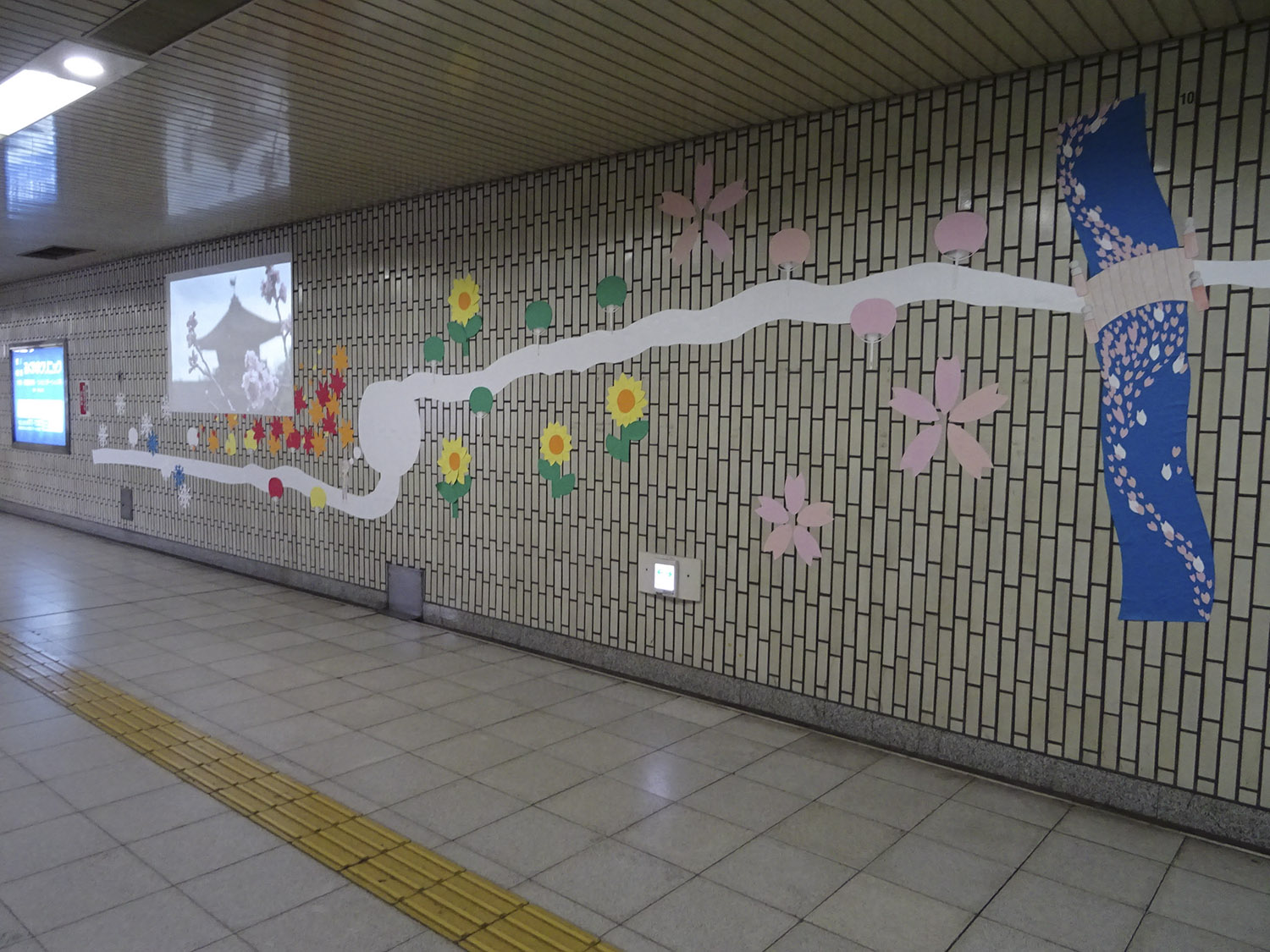 第6回目の開催となる今回は、『国際文化都市・京都』-駅から京の文化を発信する-をテーマに10大学の学生が参加しており、今回が初めての参加となる大谷大学からは、人文情報学科の松川ゼミの学生17名(3年生)が、「京都の四季を彩るもの」をテーマに、京都市地下鉄鞍馬口駅に作品の展示を行っている。