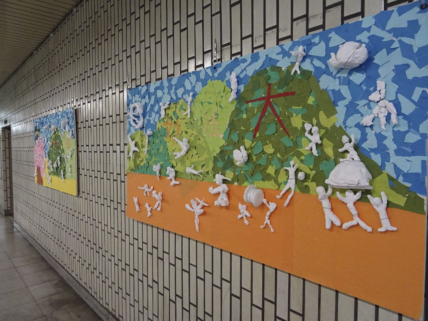 また、今回の作品制作にあたっては、近隣の京都市立紫明小学校に協力いただき、小学生に紙粘土を使って「祭」のイメージの作品を作ってもらい、一緒に展示を行っている。