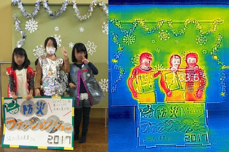 芝浦工業大学(東京都港区/学長 村上雅人)の学生プロジェクト団体「すみだの‘巣’づくりプロジェクト」は2月26日、防災イベント「イザ!カエルキャラバン!IN 寺島2017※」内の企画の一つとして、“防災ファッションショー”を企画・実施した。本イベントには約200名の子どもたちが参加。東日本大震災から6年を目前に、避難時に身の回りの新聞紙やビニールを使用して暖を取る方法を学んでもらうことを目的に企画した“防災ファッションショー”には、30名以上の子どもたちが参加した。ただ身近なもので暖を取る方法を教えるだけでは子どもたちに興味を持ってもらえないと考え、オリジナルの服を作ってファッションショーの形式とすることで、楽しく防災を学ぶきっかけとした。また、暖かさを体感するだけでなく、サーモグラフィーカメラで着用前後の温度を測ることで効果を可視化して学べる企画となった。
