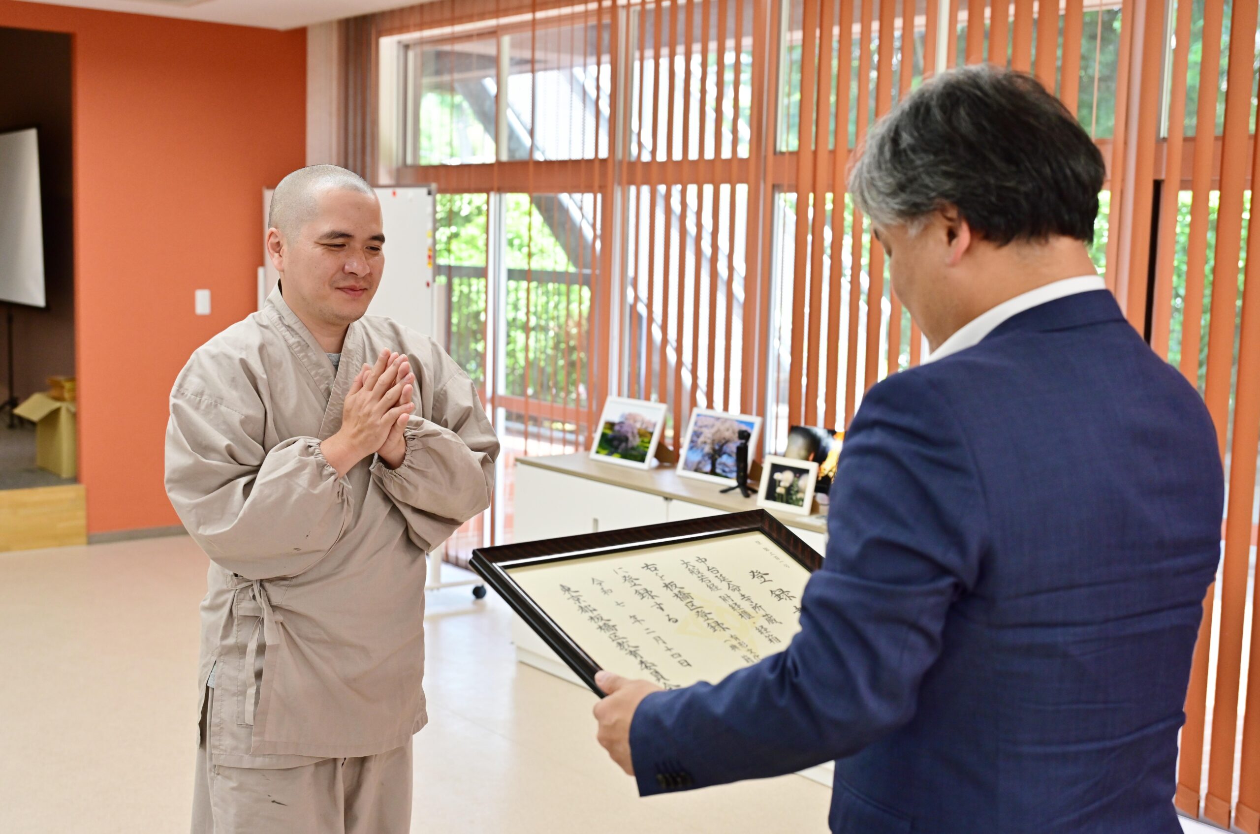 日本女子大学(東京都文京区、学長:篠原聡子)の有志学生が史料調査に携わった東京都板橋区中台にある延命寺(以下、中台延命寺)が所蔵する「中台延命寺所蔵大般若経 附旧経櫃・経箱」が2025年2月14日(金)付で板橋区有形文化財に登録され、2025年5月21日(水)には中台延命寺の大塚龍雅(おおつかりゅうが)住職へ文化財登録書の授与が行われました。