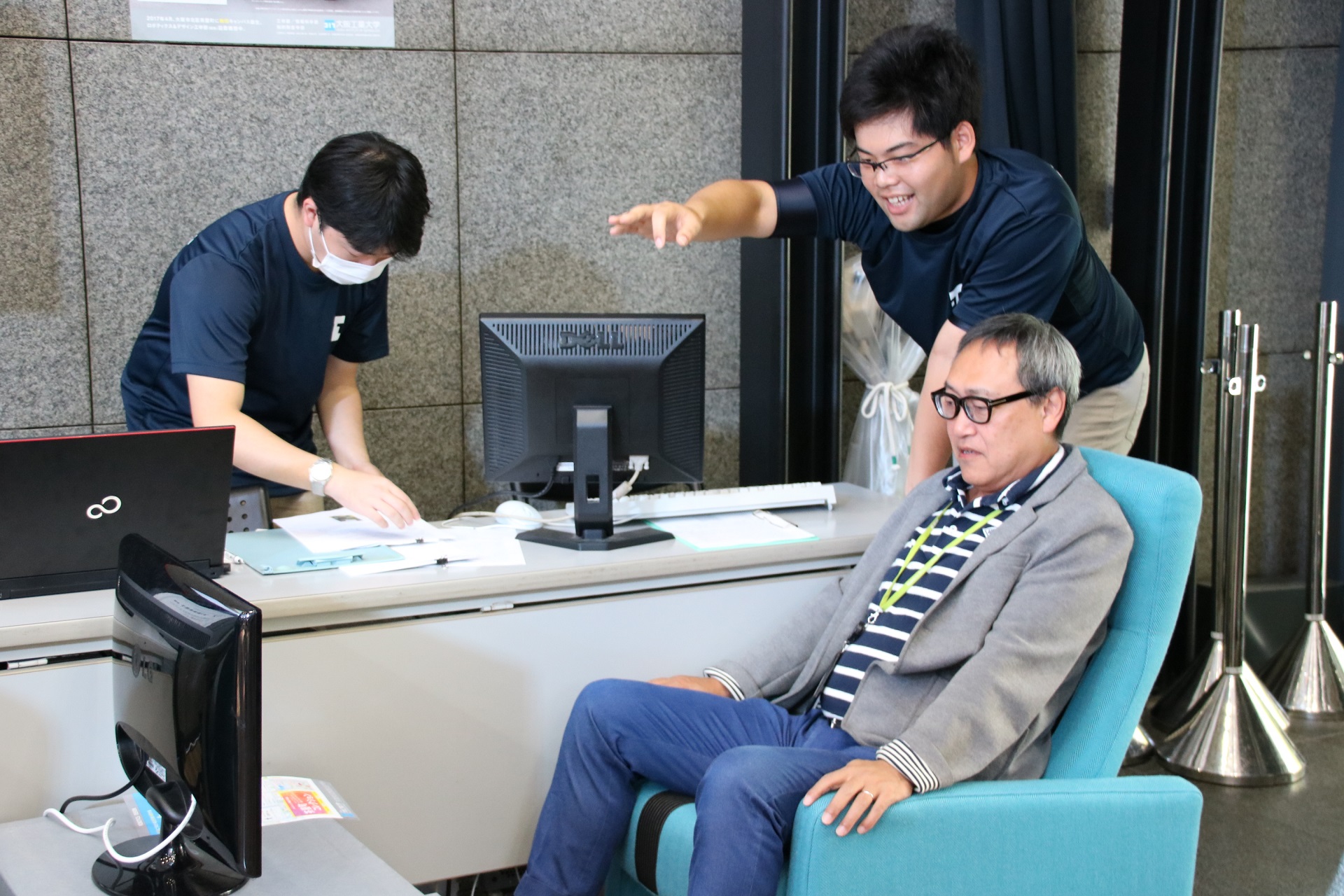 ・人の動きに反応して映像が動くキネクト/同学科・赤井愛准教授、朽木順綱准教授、ロボット工学科・中泉文孝講師