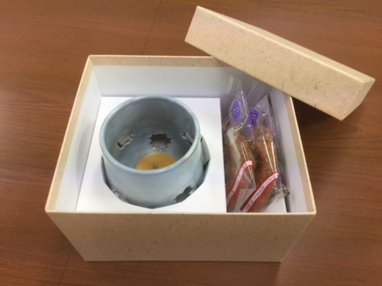 清水焼の生産団地の所在地であり、陶灯路発祥の地である山科の味も楽しんでもらえるよう老舗スイス菓子ローヌ(本店:京都市山科区)の協力により、地元京野菜山科なすびを使用した山科なすびサブレを添えた。