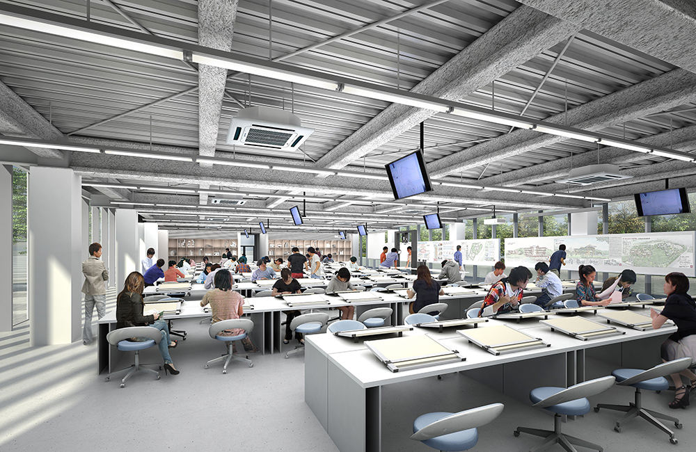 この製図室棟の整備により、充実した教育環境を実現し、学生の能動的な学びを支援することを目指す。