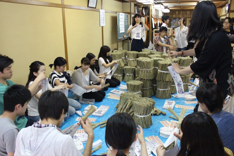 函谷鉾町は商業地に位置し、住民のいない町であるため、伝統文化を継承していくための若い力が必要だと、近隣企業と同大とのコラボレーションが一昨年から始まった。