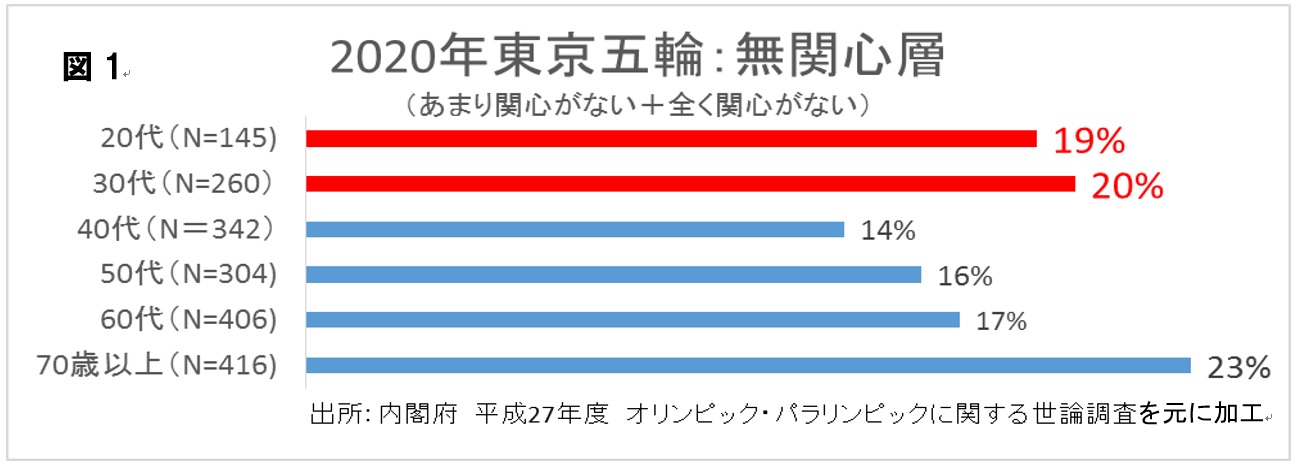 ・2020年東京五輪に対して、シニア世代より若い世代の無関心層が多い