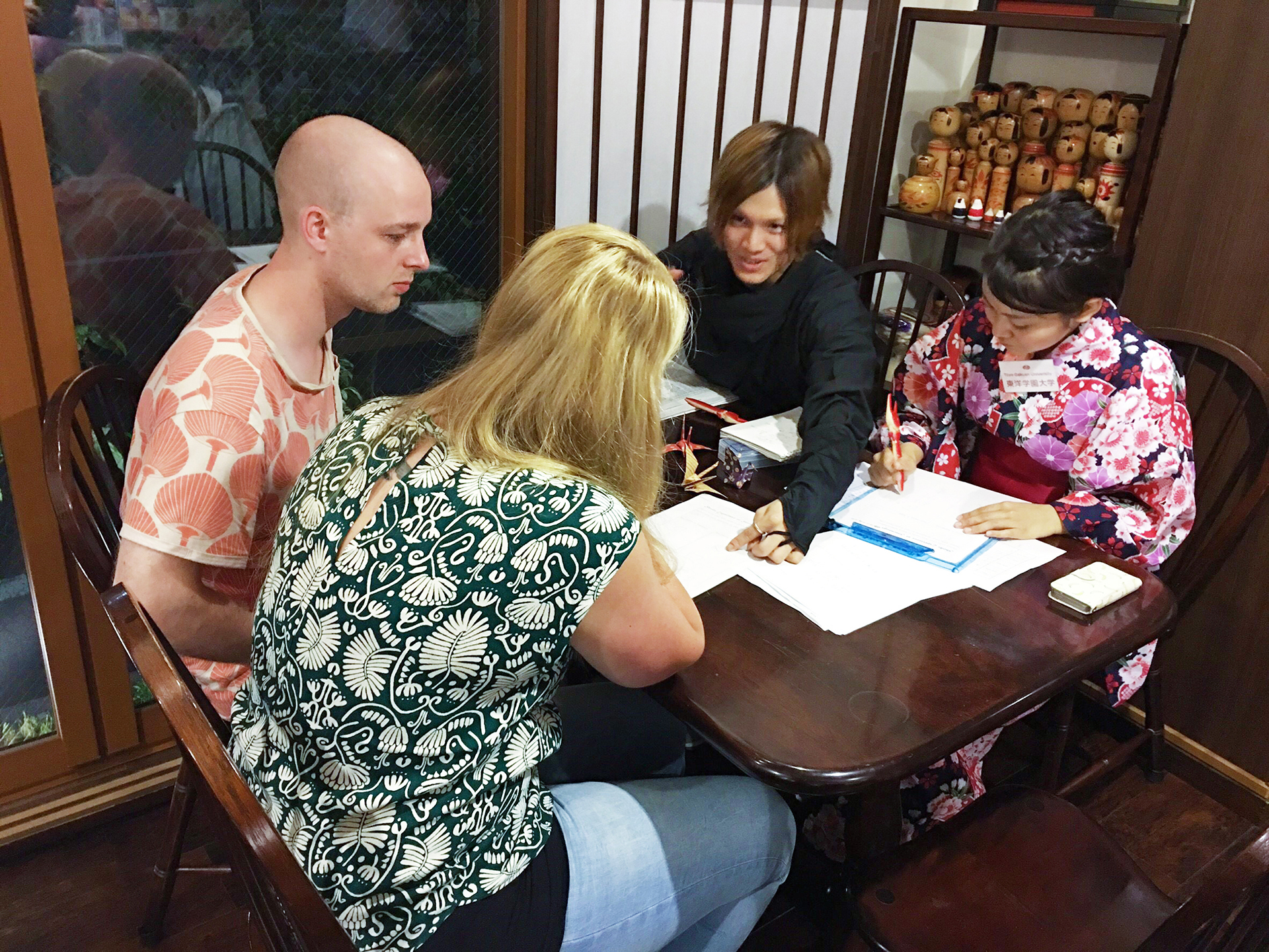 “SHODO Experience”は、旅館澤の屋の全面的な協力のもと、新設科目「プロジェクトマネジメント」の一貫として実施。5月10日、17日、24日に行われた第1弾では、フランスやアメリカ、オランダ、シンガポールなどさまざまな国籍の外国人観光客が参加した(※添付参考1)。
