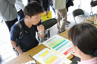 金沢区福祉保健センターによる「スモーカライザー」や肺年齢測定などの簡易検査や、試薬紙「やにけん」の配布など