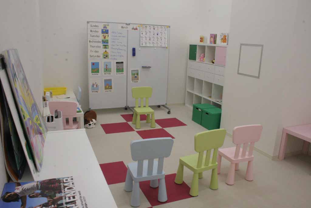 キッズクラブでは20坪のスペースを活用し、発達年齢に応じたワンランク上の教育を実施。こどもだけでなく、保護者も一緒に育児英語のレッスンを受けられることも特徴の一つ。レッスン後に家庭で、こどもと楽しくコミュニケーションを図りながら学習可能な、保護者用の英語教材も充実している。