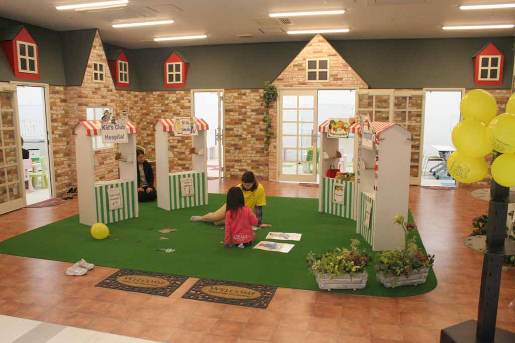 例として、川崎教室の広場に設置されるキッズホスピタルでは、幼稚園児には目や口などの体に関する名詞を英語で覚えてもらい、小学校5~6年生になると、同じ体の部位でも「お腹が痛い」、「胃が痛い」など自分の体調を表現できるようになることを目指す。