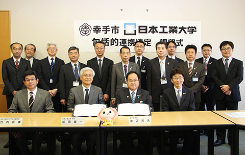 日本工業大学と幸手市(埼玉県)の包括的連携協定調印式が3月17日(木)に同大で行われた。包括協定を締結することで、地域の人材や資源を活かし協働によるまちづくり、地域づくりの推進を進めるとともに、さまざまな分野で人的・知的資源の交流・活用を図る。