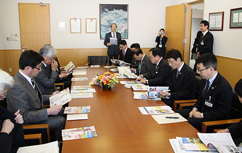 調印式当日は、渡辺邦夫市長と成田健一学長が協定書に署名を行った後、握手を交わし、今後の連携・協力を確認した。