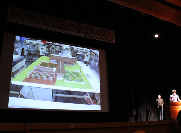 2月7日に開催された「いいたて村民ふれあい集会」に同大生活環境デザイン学科の代表2名が招かれ、作品のプレゼンテーションや授業の様子をスライドで紹介し、飯舘村長より感謝状が贈られた。
