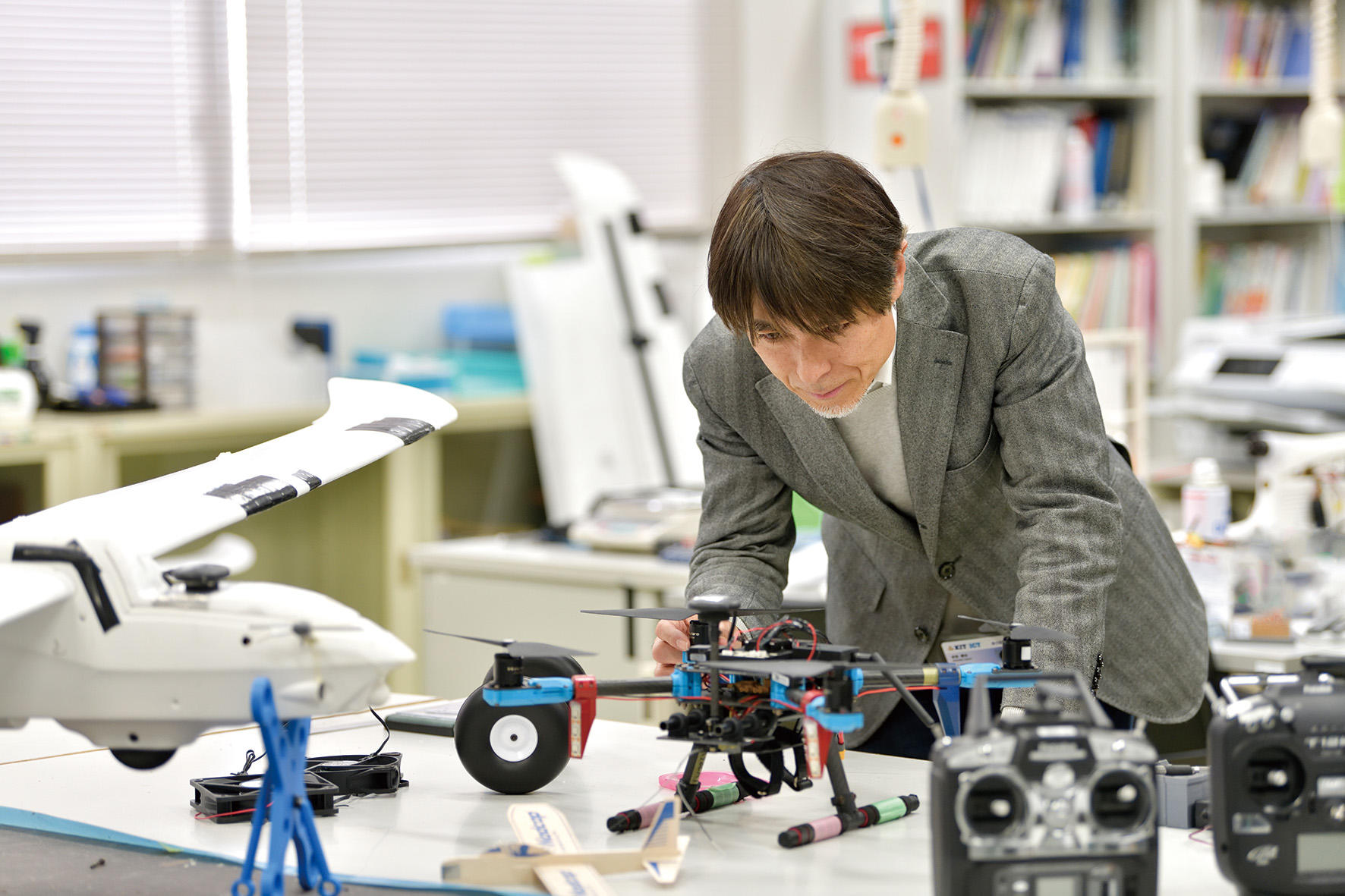 赤坂教授は「最大積載量50kg・飛行距離50km超のVTOL型有翼電動ドローンの事業」が令和6年の「ステップ1」に採択され、開発と飛行実験に取り組んできました。