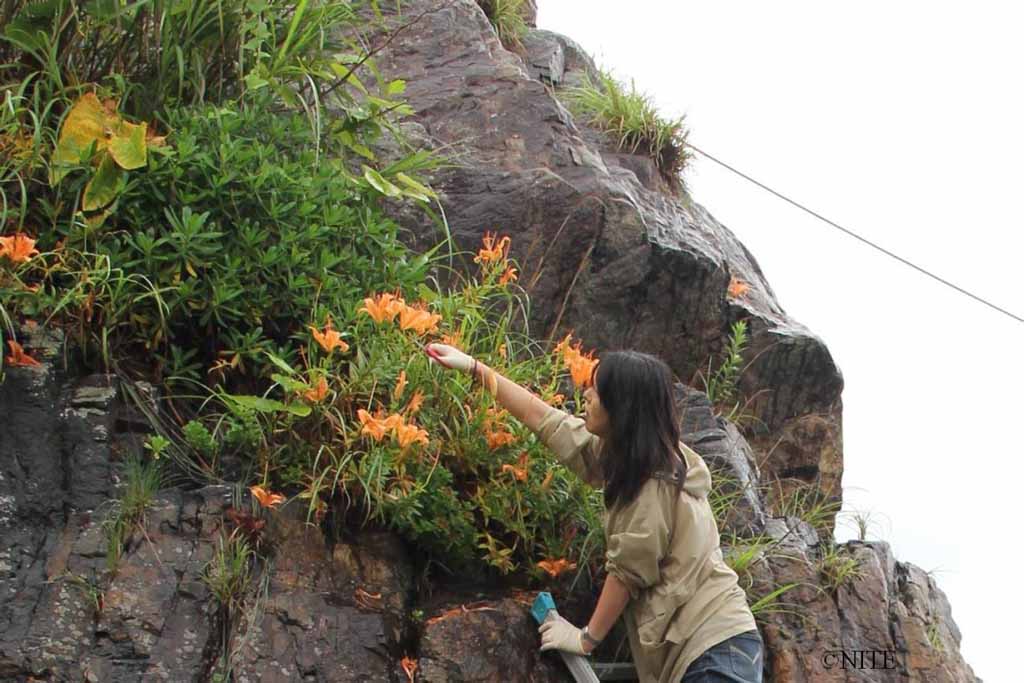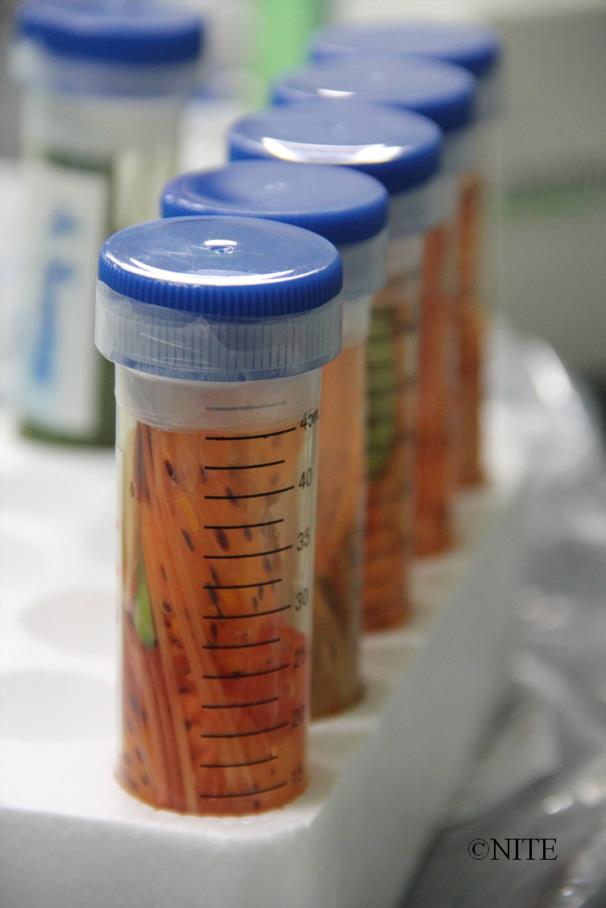 NBRCの担当者の努力で、通常では不可能なスピードで共同探索の手続きが取られ、佐須地区での「はまゆり」の採取は2013年8月1日と決まった。あいにくの小雨模様の中での花の採取になったが、岩によじ登っての採取を終え、急ぎ持ち帰って、(公財)釜石大槌地域産業育成センターで酵母用の培地を使った集積培養を開始。採取した「はまゆり」の花は、甘い香りがして、良い酵母が採取できることを予感させた。