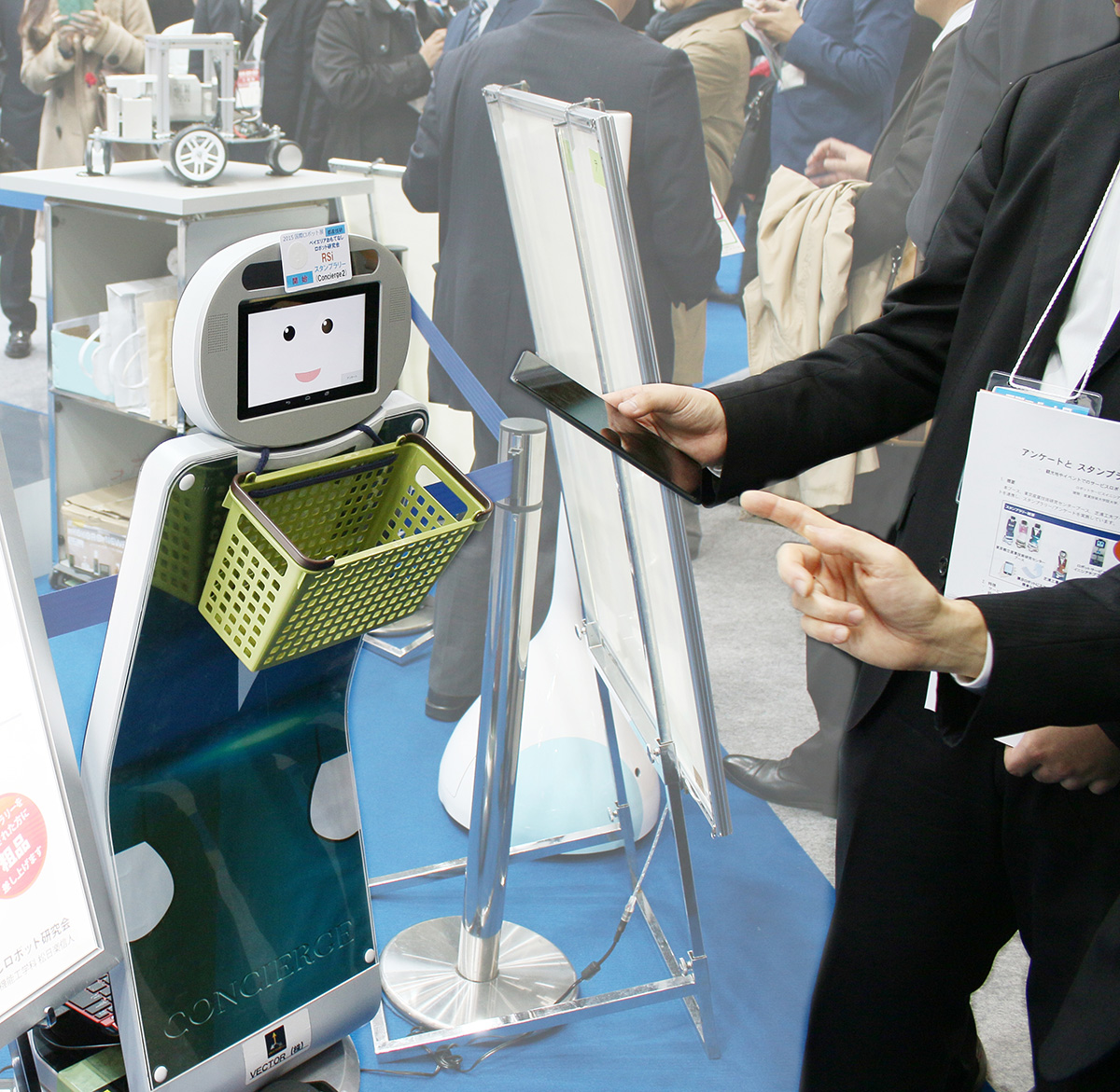 2015年2月に複数のロボットからアンケート調査ができるシステムを開発し、東京都立産業技術研究センターで発表した。今回、同年12月に開催された「2015国際ロボット展」において、展示会場内のさまざまな電波が飛び交う不安定な通信状況の実環境に近い条件で実証実験を行った。