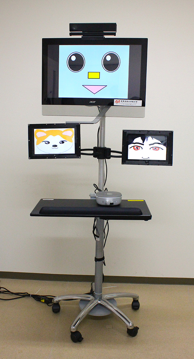 ディスプレイやタブレットの顔を持つロボット。等身大のスタンドに搭載して公共の場にも設置できる。ソフトウエアで人などの顔を模した表情を持ち音声発話をする。また、顔のパターンは用途に応じて入れ替えられる。アンケート、案内、リアルタイムの会話やモニターなどのサービスを行うことができ、移動型のロボットに比べて低価格で提供できることも大きな特徴である。