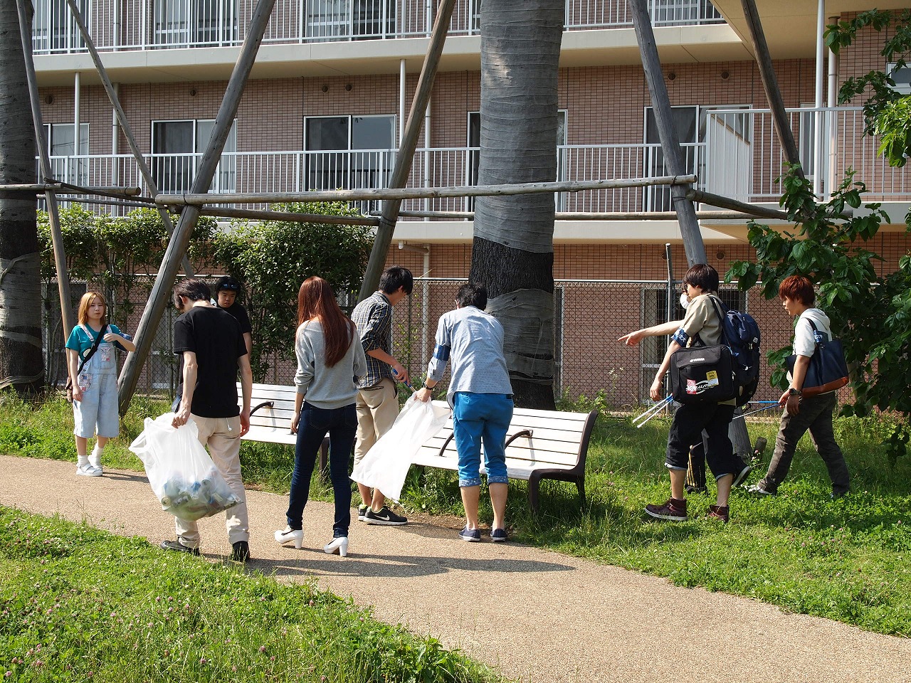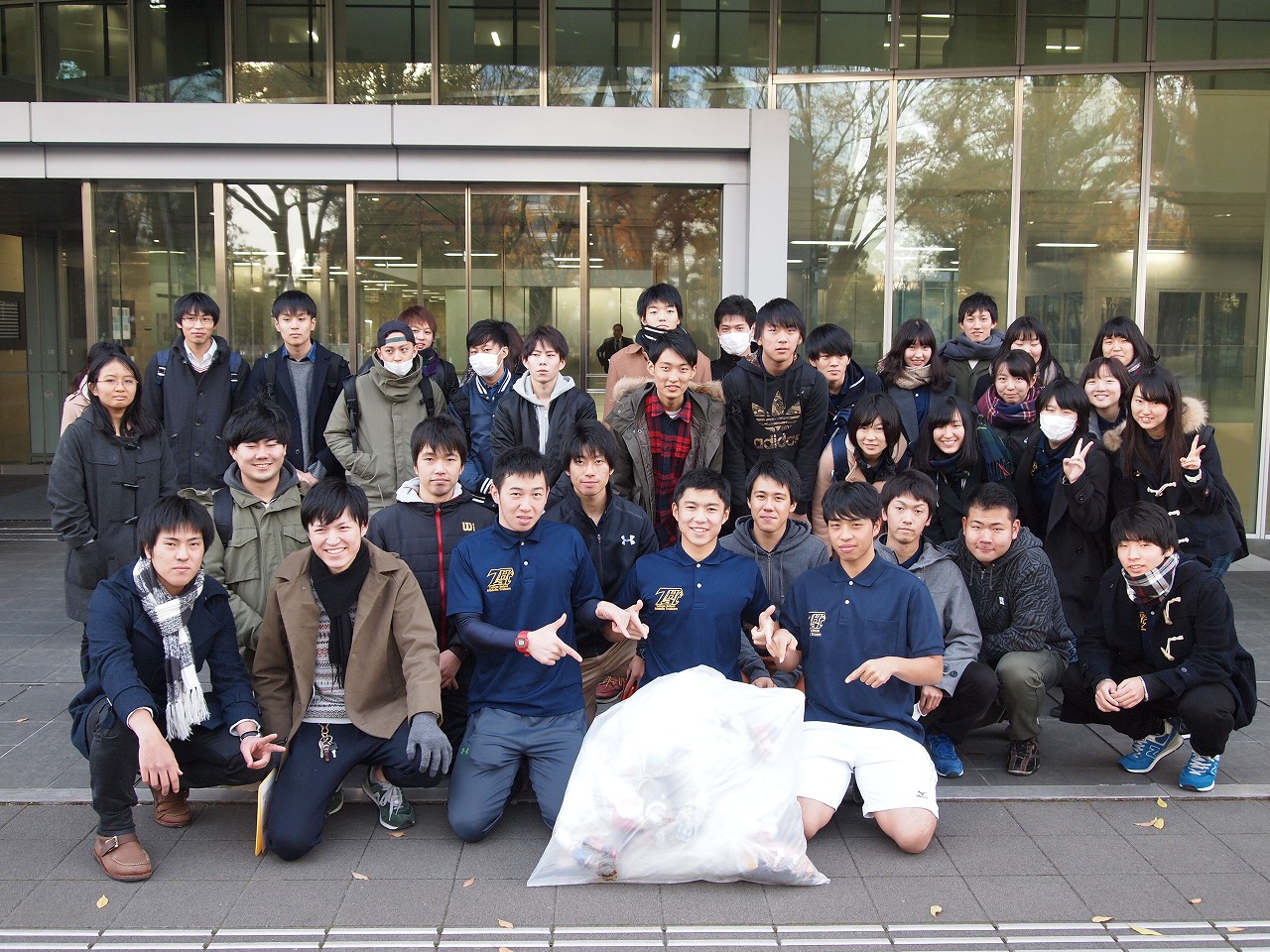 中野キャンパス「清掃ボランティア」当日は晴天に恵まれ、学友会を中心に36名の学生が参加し、中野キャンパス前の四季の森公園や高円寺北一みどり公園など、キャンパス周辺のゴミ清掃を行った。