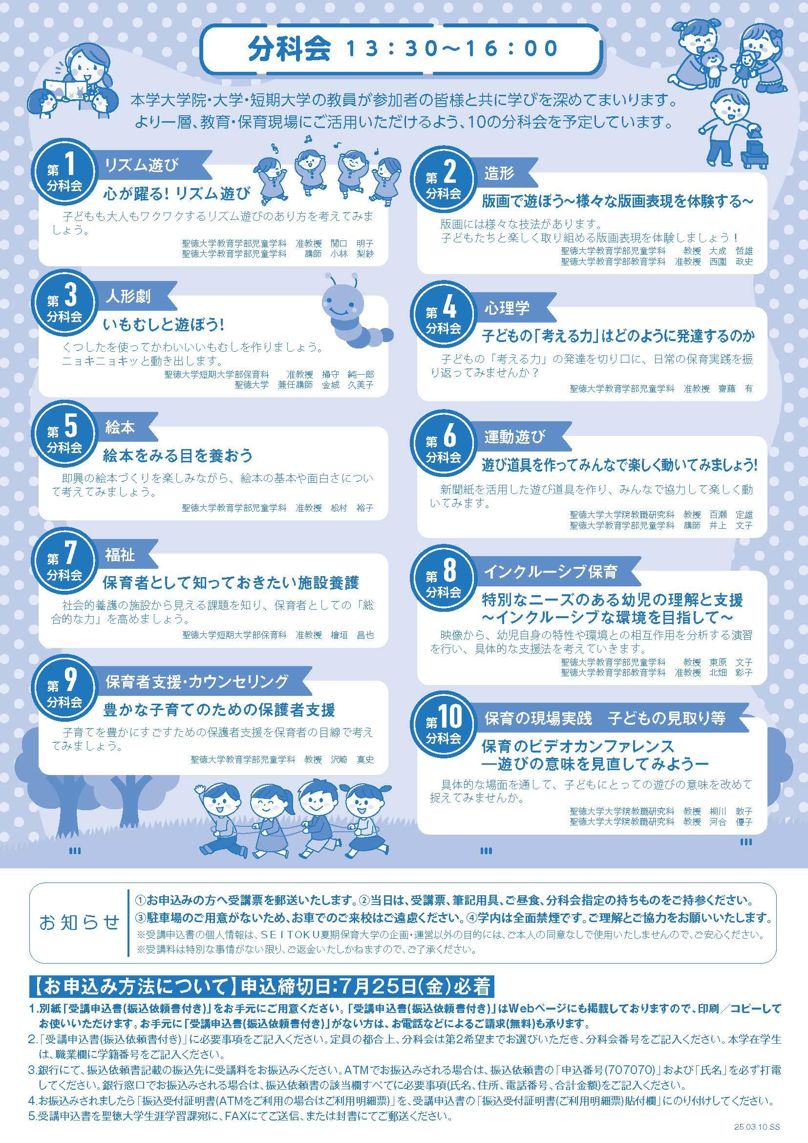 申 込:SEITOKU夏期保育大学HPを参照