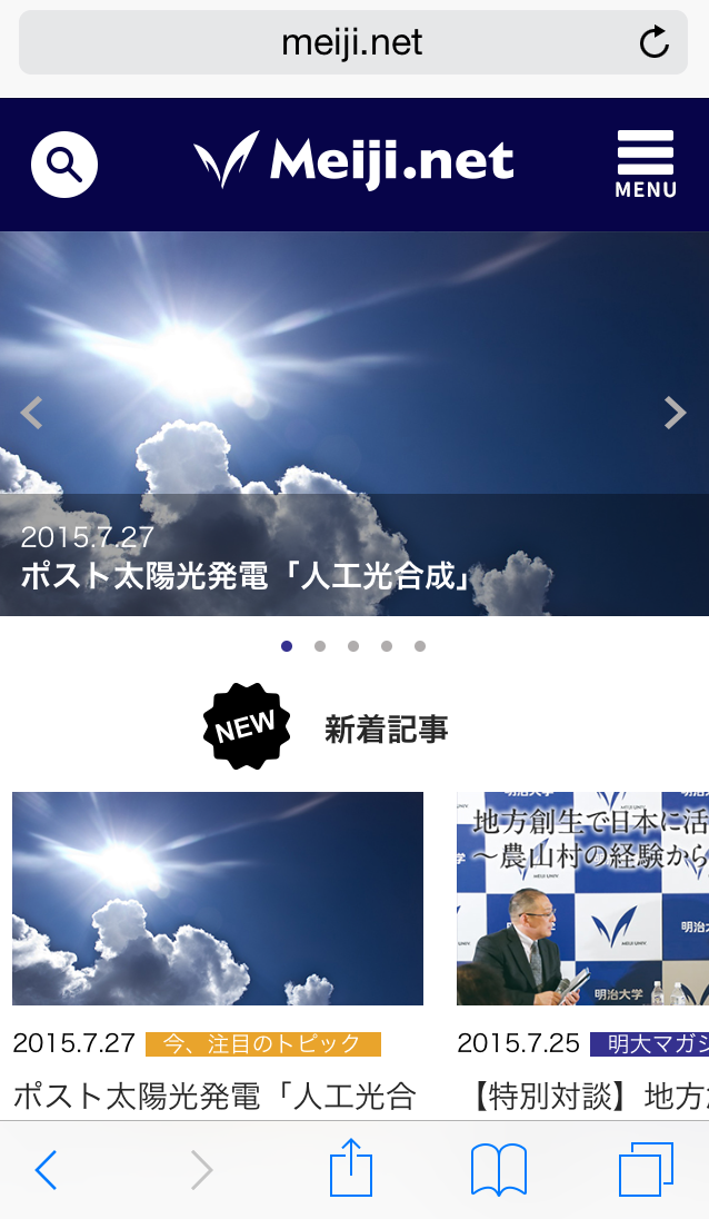 明治大学は8月3日、広く社会に対し、よりわかりやすく大学の教育・研究情報を発信している情報WEBサイト「Meiji.net」(メイジネット/URL: www.meiji.net )をリニューアルオープンした。