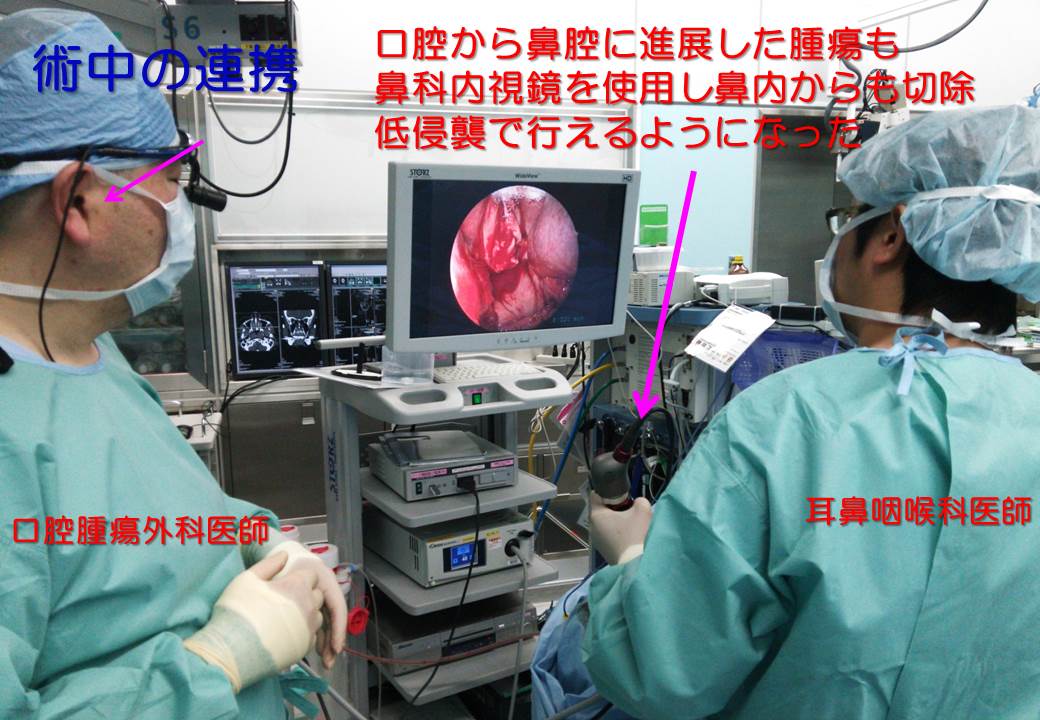 また治療には、手術だけでなく、化学療法、分子標的薬、放射線療法を組み合わせることで、機能・形態の温存を目指すとともに、治療前からの口腔ケアや術後の機能を考えた口腔リハビリテーションを行うなど、形成外科、口腔リハビリテーション科、口腔ケアセンターや他職種を含むトータルケアにより、患者のQOL(生活の質)を重視した治療を行う。
