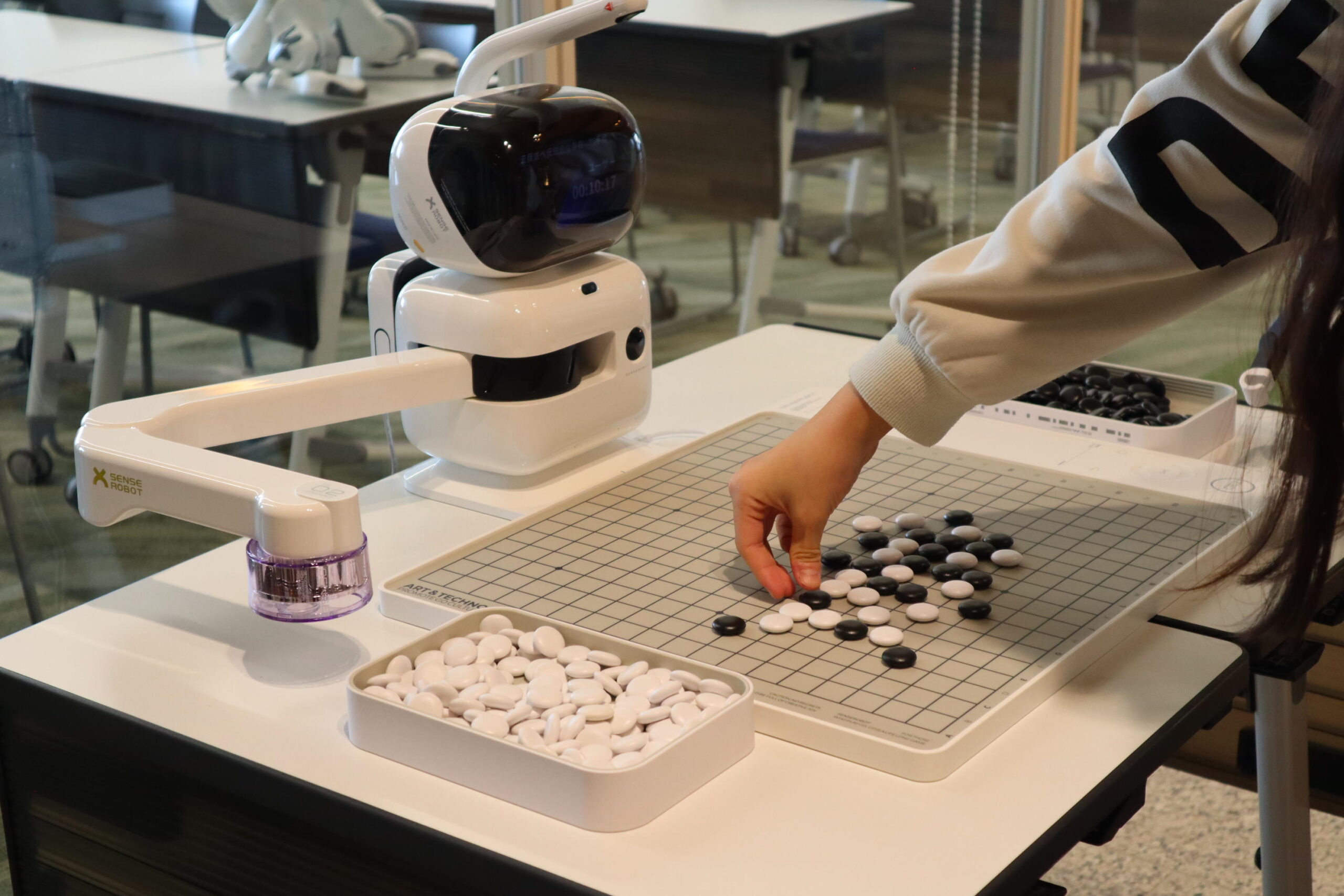 ロボット開発に注力している中国Unitree社の4足歩行ロボットを操作し、実世界で動くロボットの操作感を直感的に理解します。また、「LOVOT」や「Aibo」などの社会参加型ロボットとふれあい、人との自然なインタラクションを体験すると共に、ヒューマノイド型ロボット「Robovie-R」とモーションエディタを用いて疑似的なプログラミングを体験。実際にロボットの動作を作成しながらその仕組みを視覚的に学ぶことで、ロボットが動くメカニズムへの理解と興味を深めます。