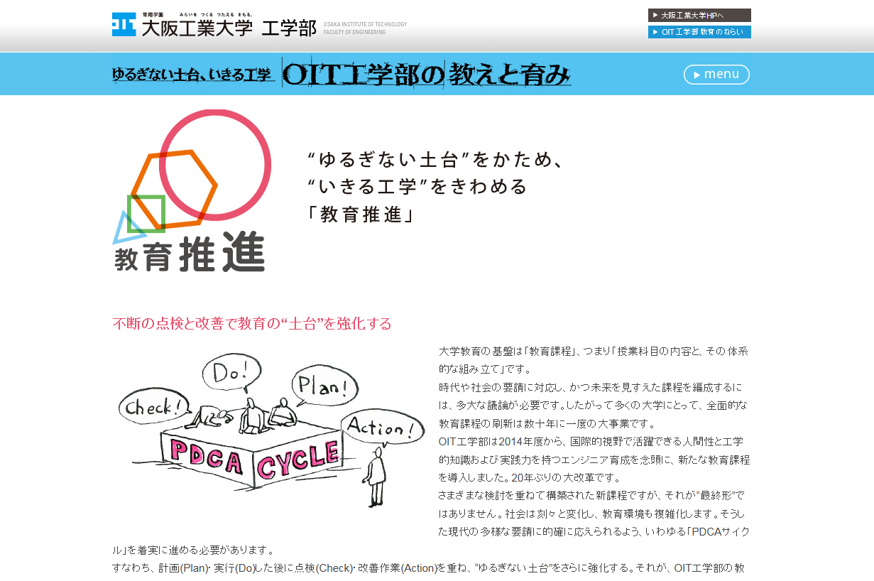 大阪工業大学工学部が、教育推進活動紹介Webサイト「ゆるぎない土台、いきる工学 OIT工学部の教えと育み」を公開