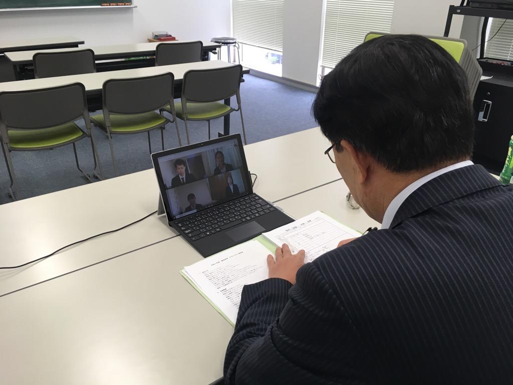 学生は自宅からの参加で、対面での面接指導と同様に正装で臨み、面接官からの質問に答えました。