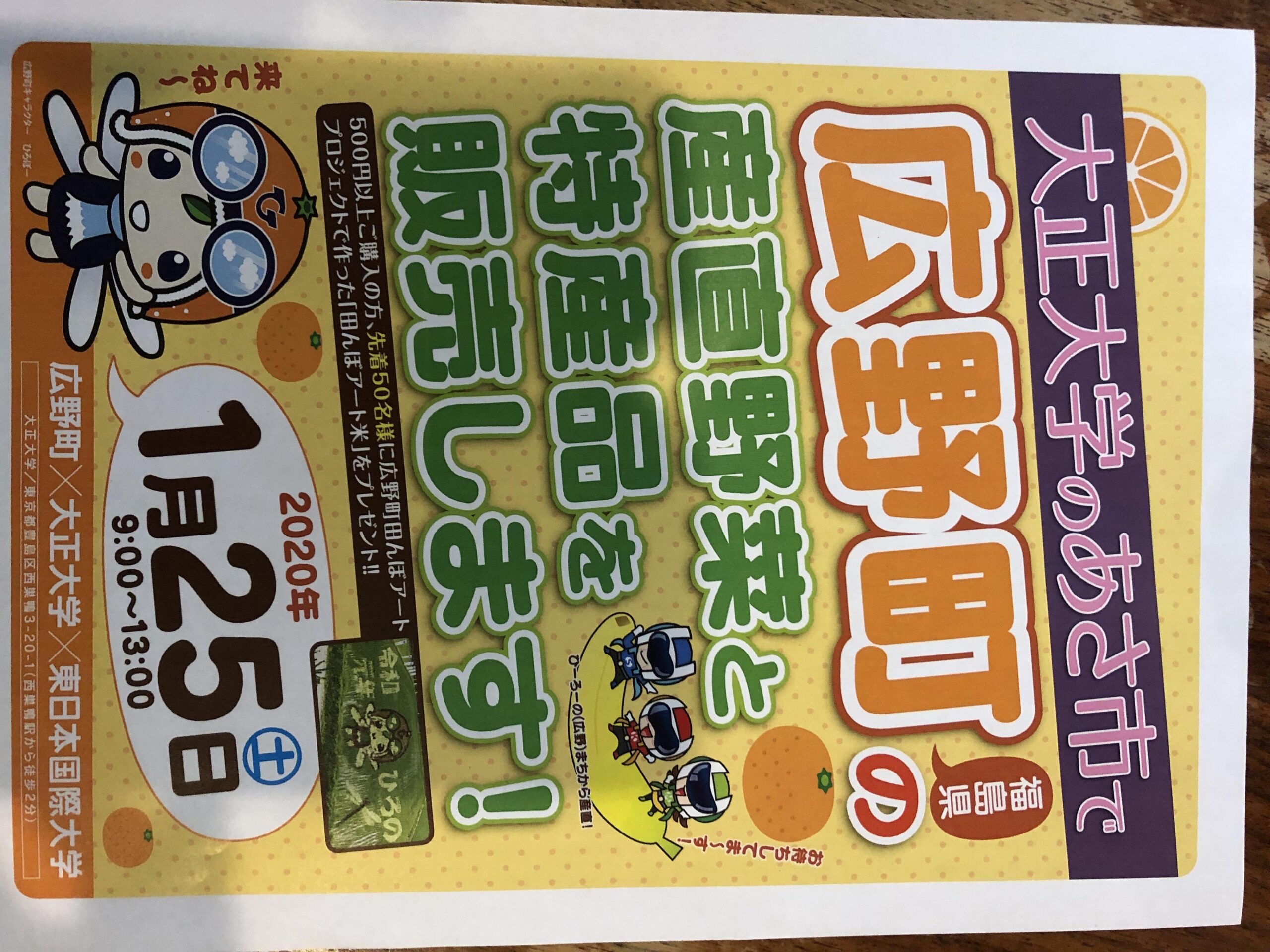 2019年からは同事業の一環として、大正大学の開催する「あさ市」(※)に参加し、広野町の特産品であるみかんをはじめ、産地直送野菜の詰め合わせや手作りの漬物などを販売している。
