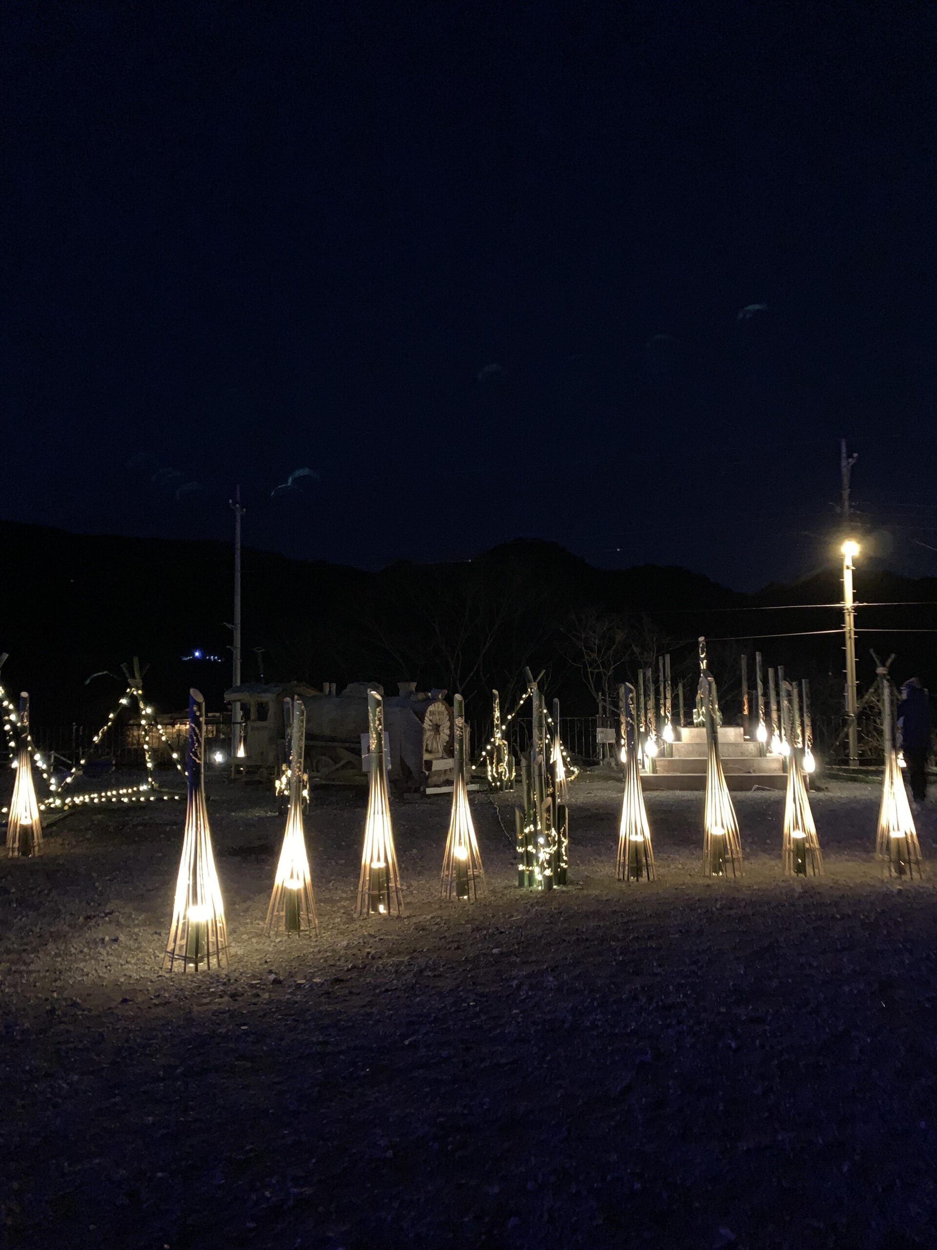 群馬県のみなかみ町にある道の駅「たくみの里」の里山企画「竹灯籠」において、学生が制作した竹灯籠が静寂な夜を演出。