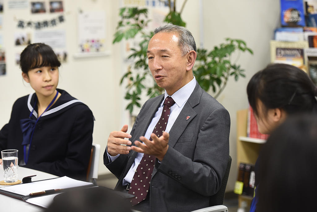 なお、講演後には、スーパーグローバルコースに所属する中高の生徒14人と学長が懇談会を実施。生徒らの質問に対し、曄道学長が「どんな情報にも必ず主観が入っている。皆さんは気持ちをニュートラルにして、情報をどう受け止め、解釈するかを考えるべき」など、およそ1時間にわたって、”白熱教室”をほうふつとさせる、知的刺激に満ちた時間が繰り広げられた。