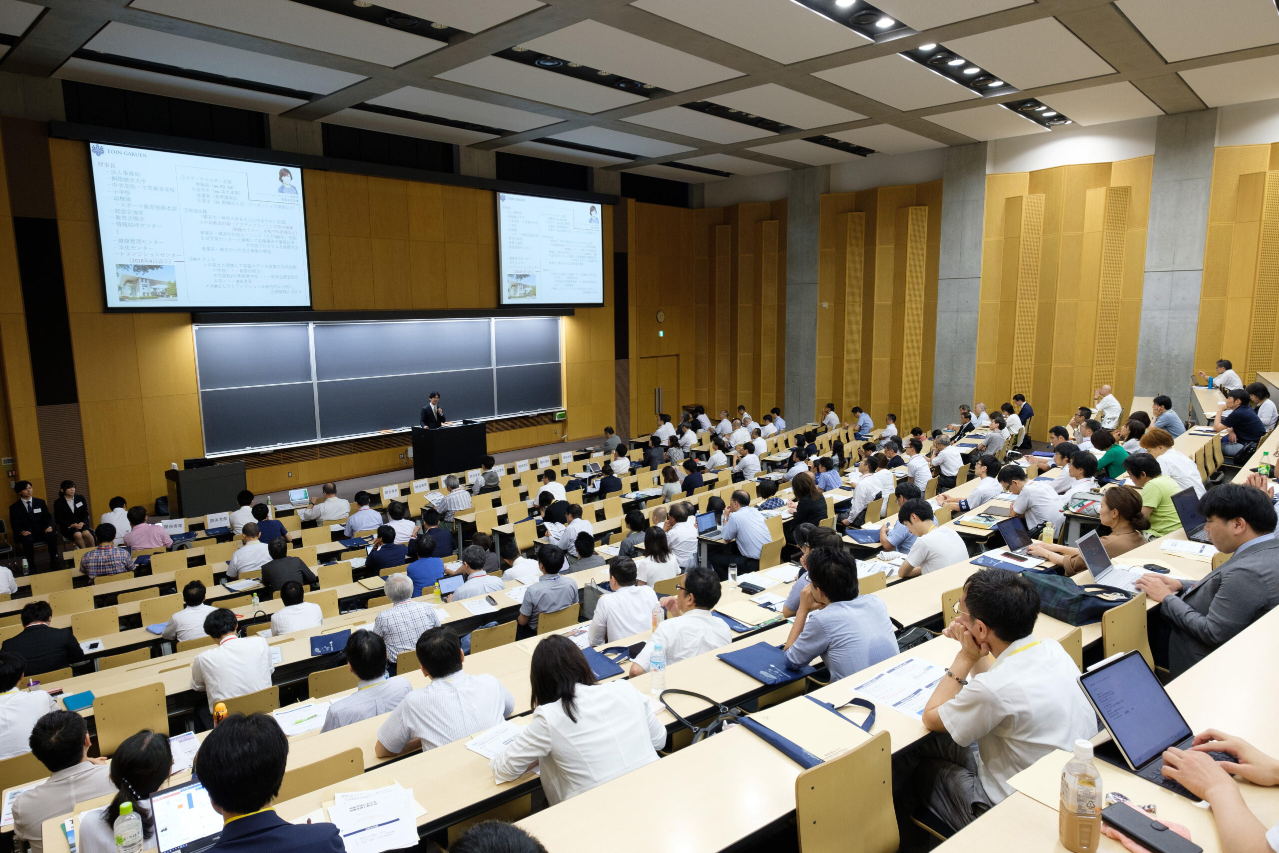 このフォーラムは、桐蔭学園における授業実践のノウハウ発信だけでなく、全国から現役の教員を講師に招いて、参加者全員が学び合うワークショップ型研修であることが特徴。北は北海道、南は沖縄まで、全国から中学・高校・大学の教職員、企業関係者が200名弱参加した。
