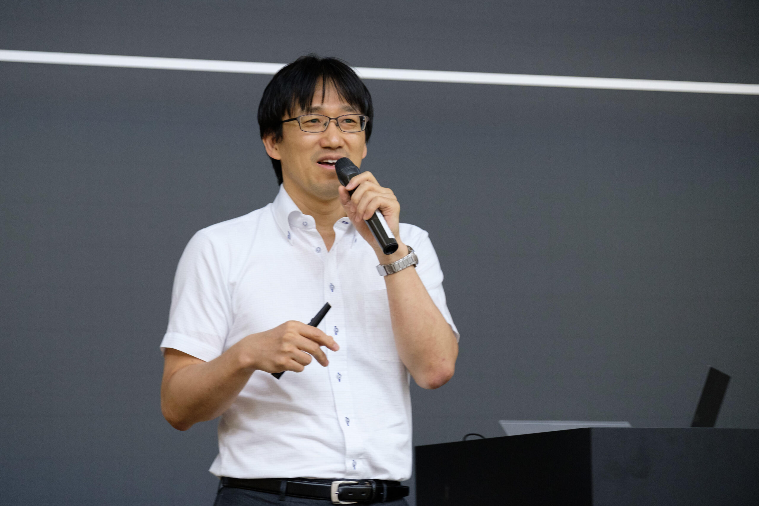 川妻篤史室長の講演では、桐蔭学園におけるアクティブラーニング型授業の導入経緯と実施状況、さらには学園内のトランジションセンターと連携した教学IRについての説明があった。