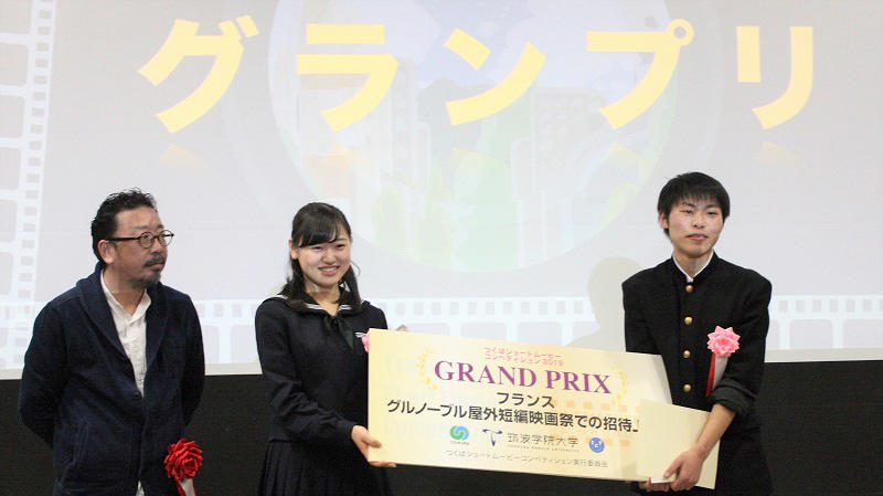 これは、筑波研究学園都市50周年を記念して、つくばからの文化発信と、次世代の才能を発掘することを目的とし、つくば市と筑波学院大学が共催で開始したもので、今年6回を迎え、優勝作品はつくば市の姉妹提携年であるフランス・グルノーブルの屋外短編映画祭で特別上映され、筑波学院大学より航空券が贈呈された。