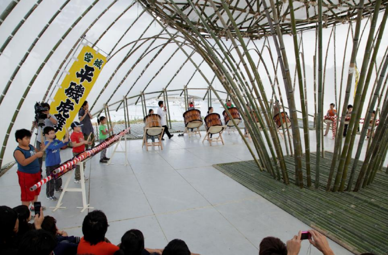 竹の会所は、被災者の「未来を語り合いたくても、語り合う場所がない」という言葉をきっかけに始まったプロジェクト。「地元の竹を使って、皆が自由に集えるような会所を作れないか」という想いの下に、滋賀県立大をはじめとした全国の大学生や社会人、総勢70名が集まった。