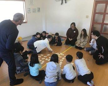地域交流(1):地域の英会話教室にて、地域児童対象の英語レッスンに留学生が参加