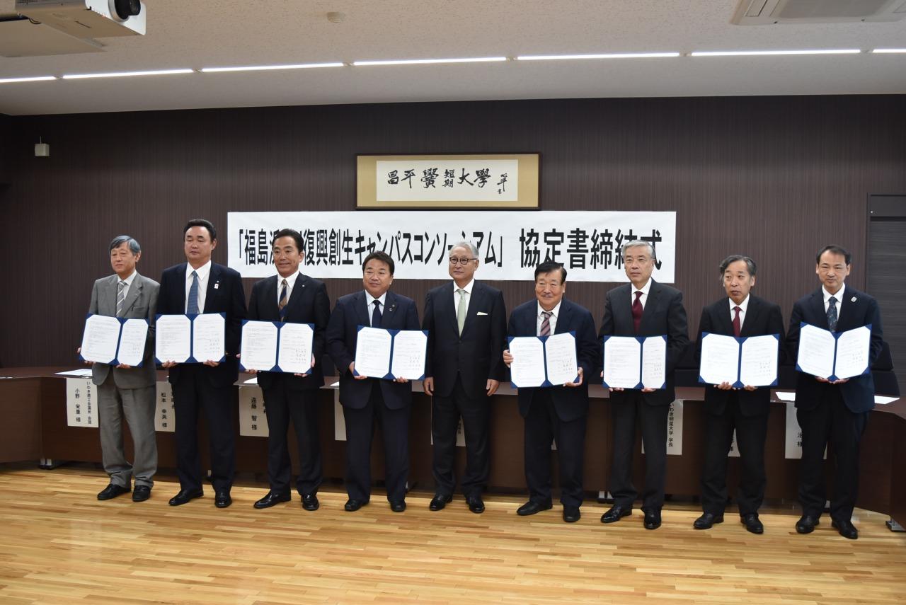 協定書に締結したのは、東日本国際大学(福島県いわき市)、いわき明星大学(同)、いわき短期大学(同)、福島工業高等専門学校(同)、いわき市(同)、広野町(福島県広野町)、楢葉町(福島県楢葉町)およびいわき商工会議所(福島県いわき市)。東日本国際大学・いわき短期大学を運営する学校法人昌平黌がコンソーシアムの取りまとめ役を担う。