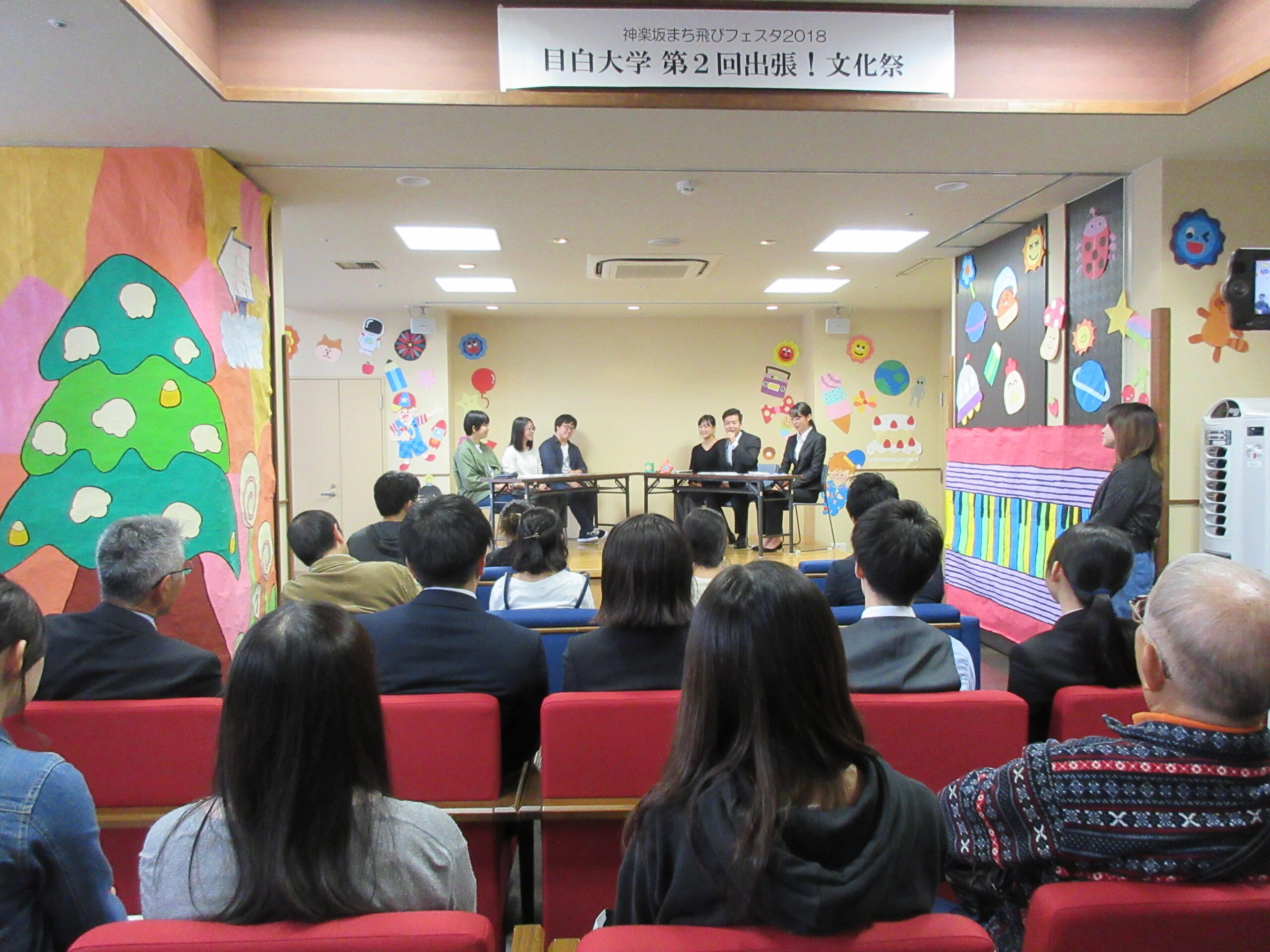 「出張!文化祭」はその一環として実施したもの。学園祭に来てもらうだけでなく、学園祭が出向いていくという発想で、大学と地域が連携し、「神楽坂」を拠点に施設利用者や地域の人々と交流、併せてまちの地域活性化に一役買いたいという企画として昨年から開催している。