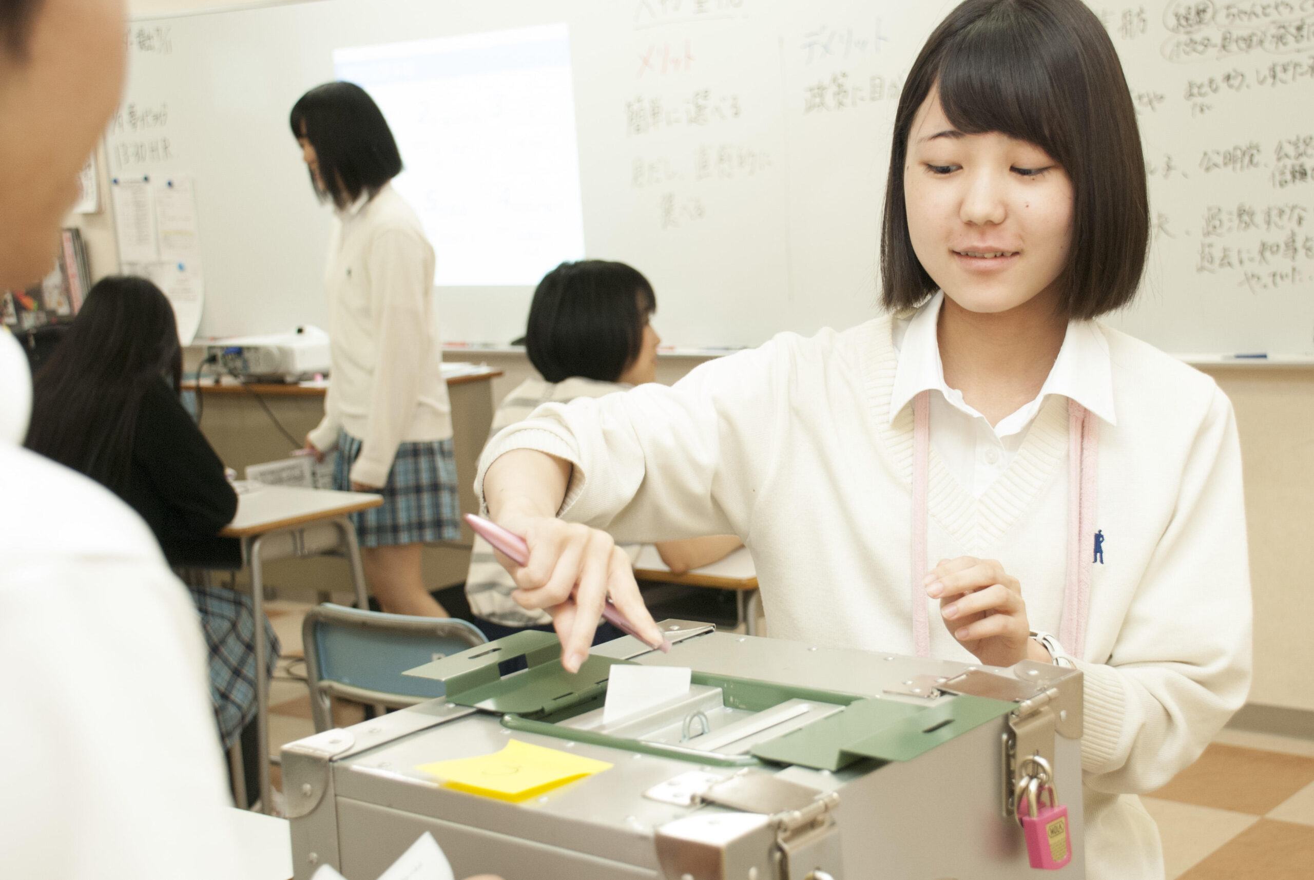 実際の投票現場を再現した模擬投票を実施し、「生きた政治教育」を体験。