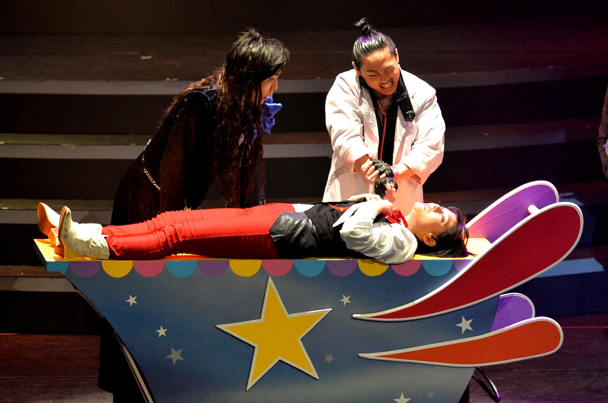 今回の公演では、手塚治虫の名作を元にした横内謙介による脚本「リボンの騎士 ~鷲尾高校演劇部奮闘記~」を総勢約100名のパフォーマンスコース生が演じます。過去にプロの役者も演じている難易度の高い本作品を、高校生であるパフォーマンスコース生独自の視点やオリジナリティを加え挑戦。演者としてはもちろん、装置、背景、衣装、大道具や小道具の製作、スポンサー集めに至るまで、全て生徒が主体的に行動して完成させました。